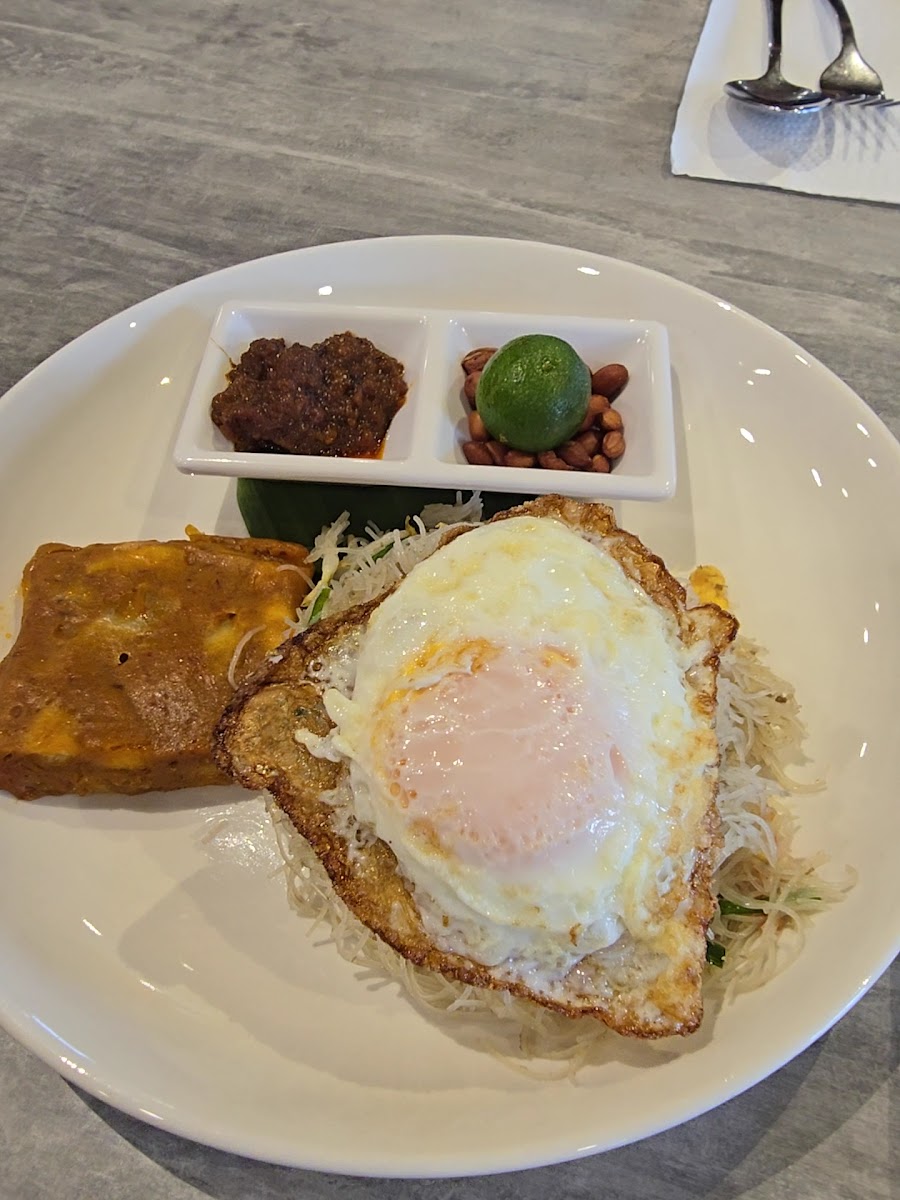 Accidentally found this cafe, due to no car parking at My KOL cafe. Nasi lemak with hot fried chicken Mee siam ala carte the fried egg. Free cook siam Yam cake, so yam Rote prate.. to be improved Nice